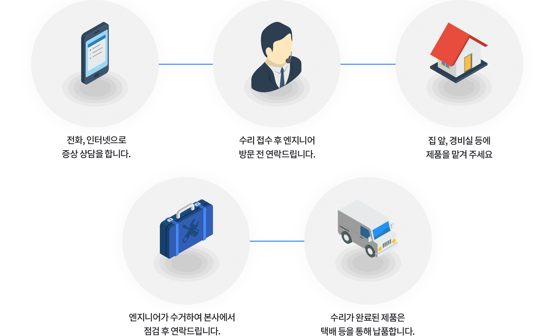 고객님과 지역 사회의 안전을 위해, 고객과 엔지니어가 직접 만나지 않고 모든 수리 절차를 진행하는 서비스입니다. 고객과 엔지니어간의 접촉을 최소화하여, 만에 하나 발생할 수 있는 질병 전파의 가능성을 원천 차단하고 고객님이 안심하고 수리를 맡기실 수 있게 해 드립니다.
